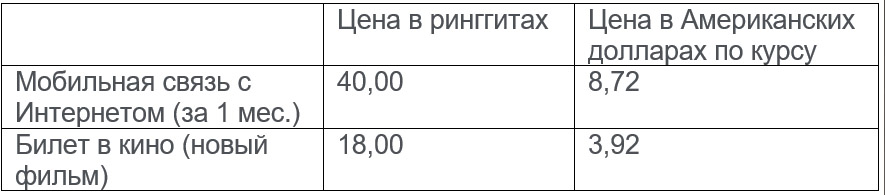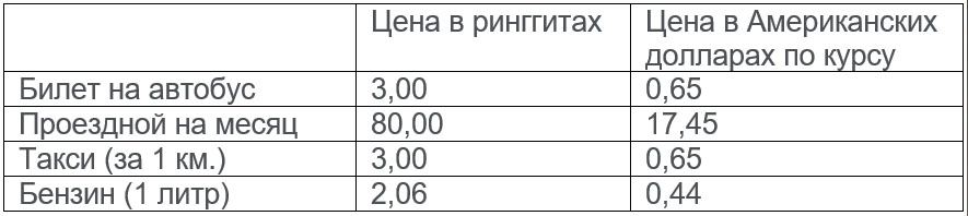 Цены актуальны на начало августа 2023 года. Цены приведены в ринггитах – национальной валюте Малайзии. Ринггит состоит из 100 сенов.