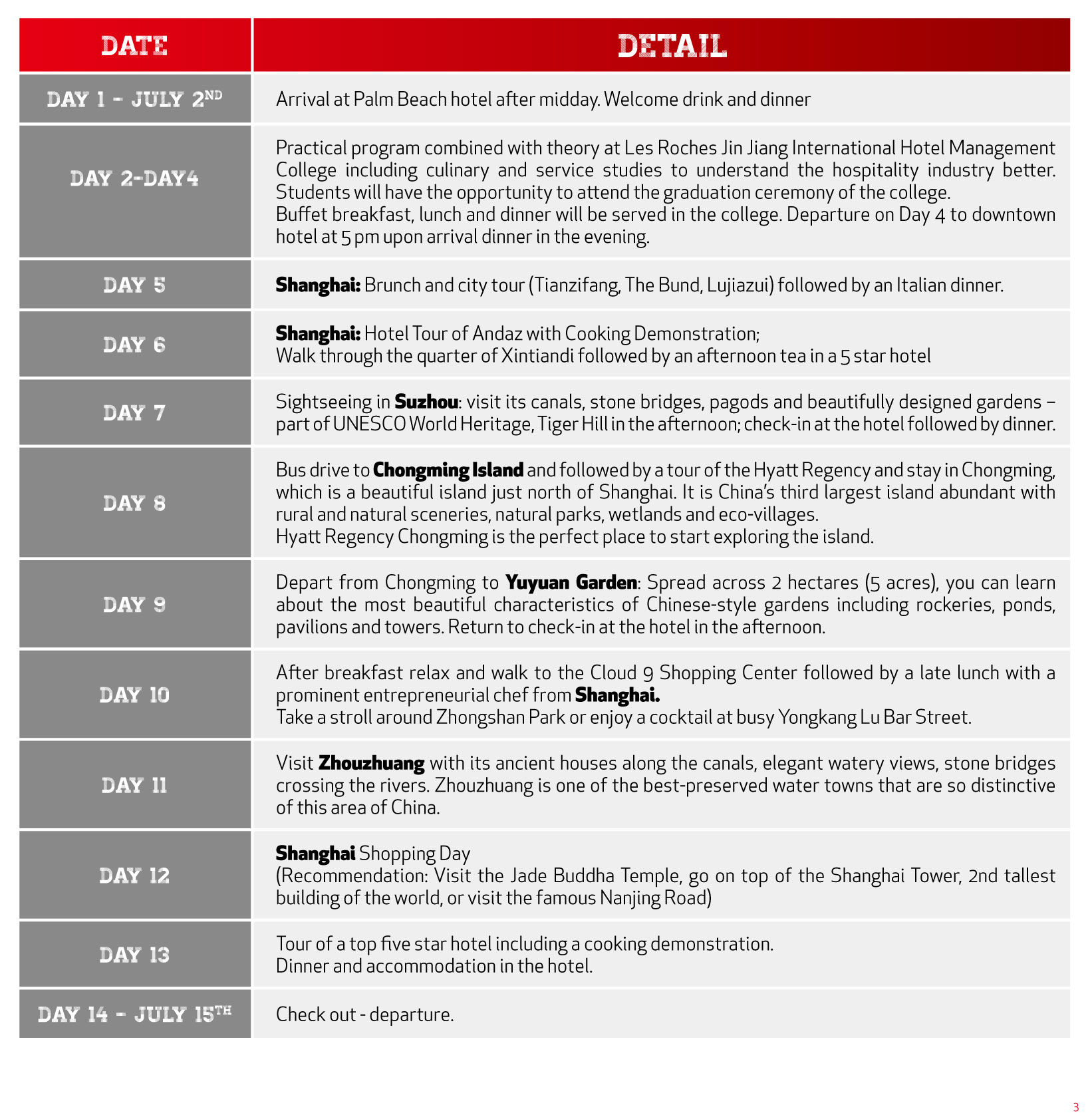 Летнюю образовательную программу проводит Les Roches (ведущая международная сеть институтов гостеприимства, имеющая свой кампус и в Китае). Во время поездки студентов сопровождают англоговорящие преподаватели университета.